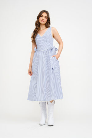 OLIVE BLUE STRIPE DRESS (N1907D-1)